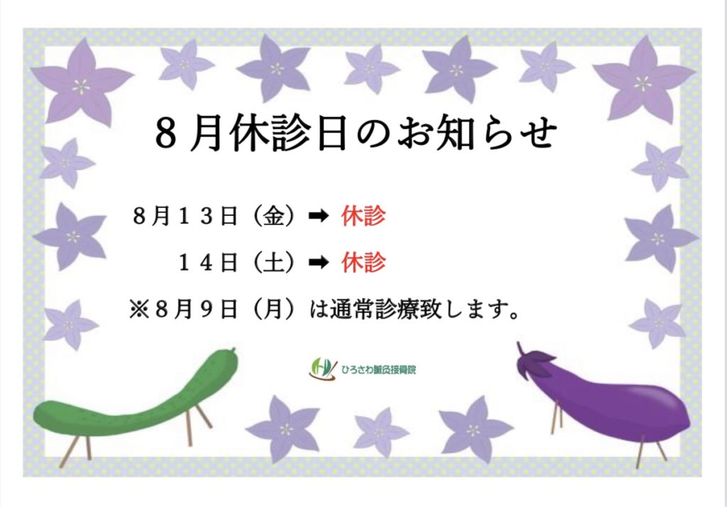 8月休診日のお知らせ
